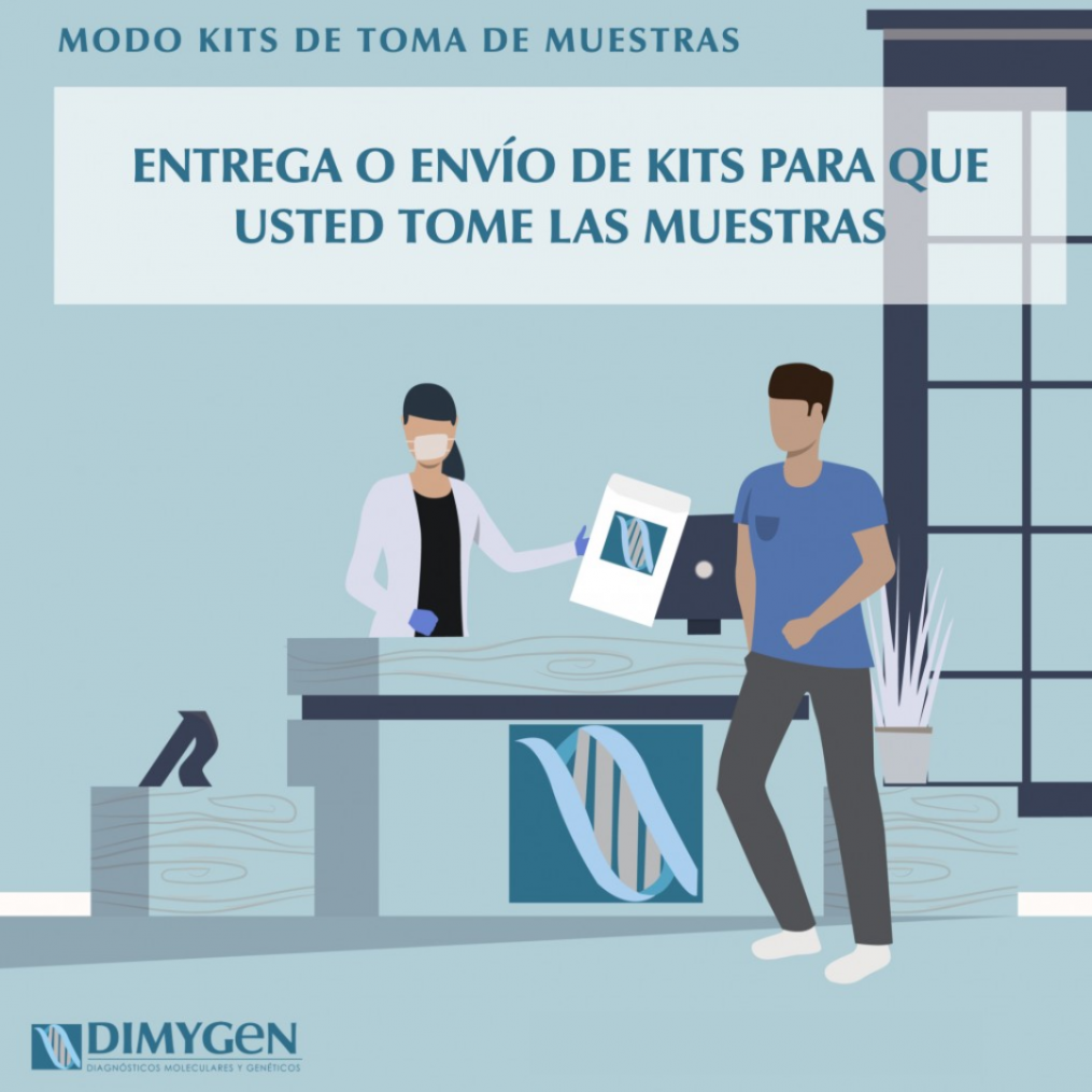 Modalidad Kits de toma de muestra. Consiste en entrega/envío de kits para que usted tome las muestras. Incluye instrucción y materiales necesarios para tomar y preservar la muestra de exudado bucal. |